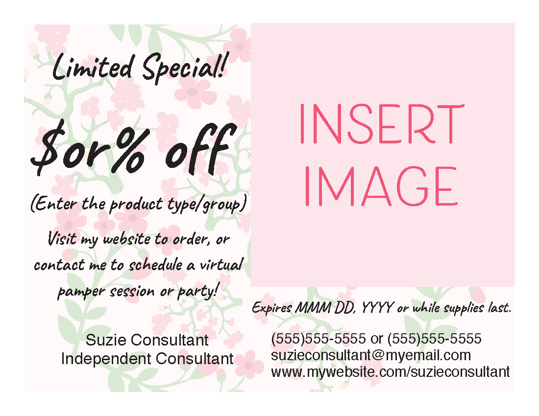 The assets below come as a 4-to-a-page layout (postcard size) or an 8-to-a-page layout (coupon size). All fliers are super flexible! Change the text, prices, options, etc. Click the Open button, then download and save before editing. Alternatively, use the Document Builder inside Boulevard to tailor documents and images like the ones below (with even more customization options)!